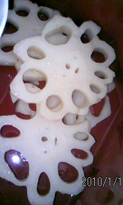 金時人参だけではなく、蓮根の酢の物も入れ忘れた模様。