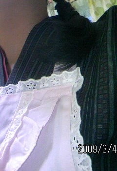 淡いピンクの、ちょっとフリルのついたエプロンもつけると、昔のカフェーの女給さんor和風メイドさんのようになった(笑)