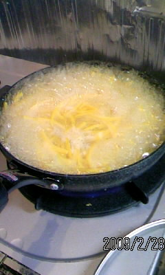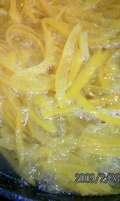 煮ている皮が、徐々に、もったりとしてくる。