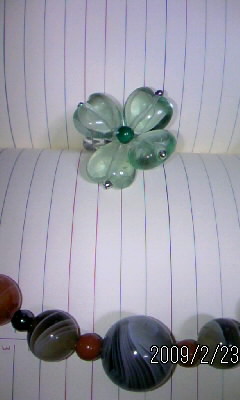 そのクローバーの芯にしたのは、マラカイトの3mm玉。