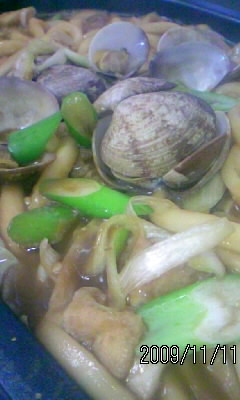 帰りに寄ったスーパーでは、あさりが安くなっていたので、今夜はあさりの味噌煮込みうどん。土鍋ではなくホットプレートを使って調理したから、スープは少なめ。